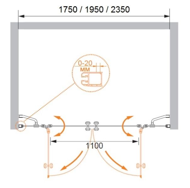 Душевая дверь CEZARES ELENA-W-B-22-200-C-Cr хром