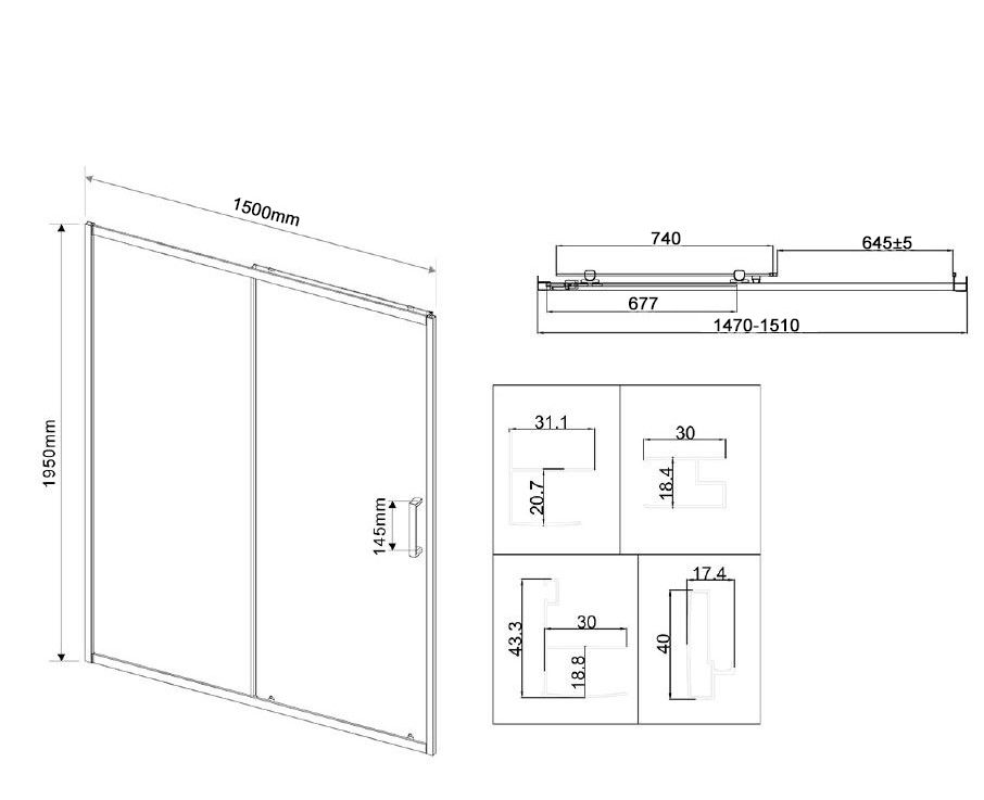 Душевая дверь Vincea City VDS-5CT150CLB, 1500, черный, стекло прозрачное