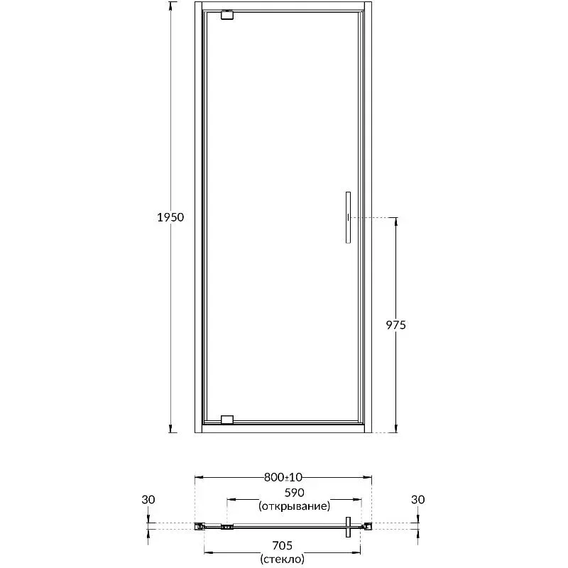 Преимущества распашной двери VETRO: — Лаконичный современный дизайн: алюминиевый профиль, скрытый крепёж, стильная ручка с обеих сторон двери — Регулировка проема 20 мм (10 мм с каждой стороны) — Закаленное безопасное стекло 6 мм, водоотталкивающее покрытие «easy clean» — Правое или левое открывание, лёгкая установка.