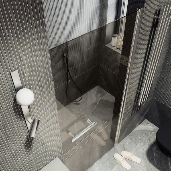 Стеклянная душевая дверь на монопетле является стильным и функциональным аксессуаром для ванной комнаты. Монопетля обеспечивает плавное и бесшумное открывание и закрывание двери. Закаленное стекло, из которого изготовлена дверь, обладает высокой прочностью и устойчивостью к механическим повреждениям и воздействию влаги. Закаленное стекло, цвет бронза, толщина 8 мм 1950х845 мм - 1 шт.