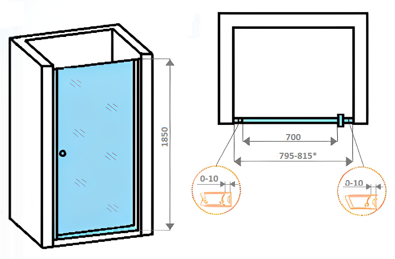 Дверь открывается только в одну сторону.Достоинства душевой двери: