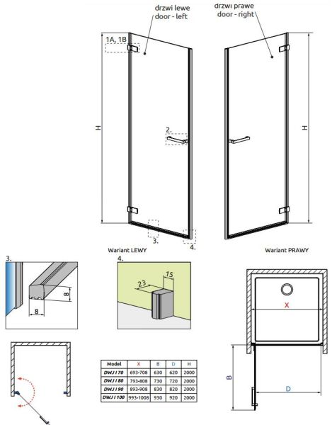 - створки двери можно заказать либо в двух идентичных размерах, либо в двух разных размерах, если это необходимо