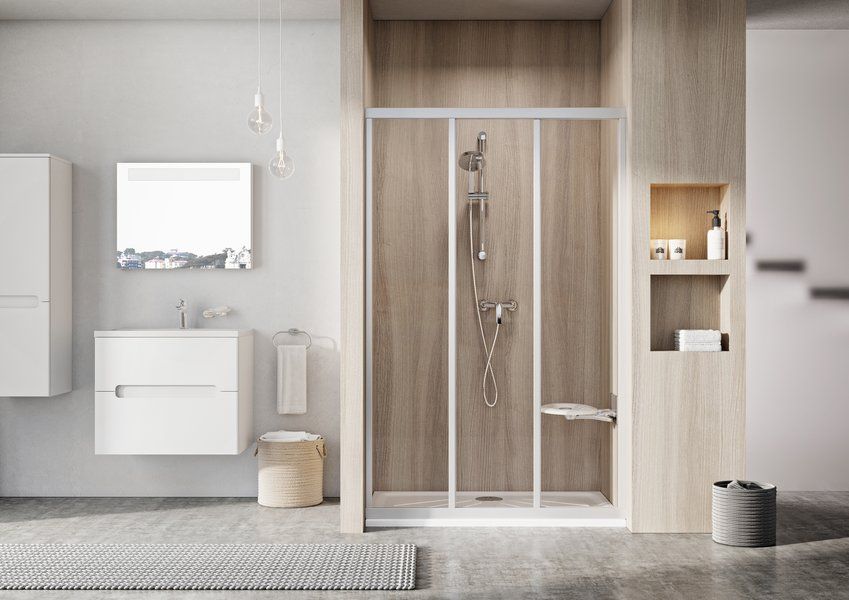 Изделие состоит из одной неподвижной части и двух подвижных частей. Повернув изделие на 180°, получите левый/правый варианты входа. Устанавливается в облицованный кафелем угол ванной комнаты на поддоны RAVAK ANETA, ANGELA, PERSEUS, PERSEUS PRO, PERSEUS PRO FLAT, PERSEUS PRO CHROME, GIGANT PRO, GIGANT PRO FLAT, GIGANT PRO CHROME или непосредственно на пол со встроенным душевым каналом или трапом. Комбинируя одну неподвижную стенку типа APSS с душевыми дверьми можно создать «Г»-образный душевой уголок. С помощью двух неподвижных стенок типа APSS и душевых дверей образуете «П»-образный душевой уголок. Возможно изготовление атипичных душевых дверей.