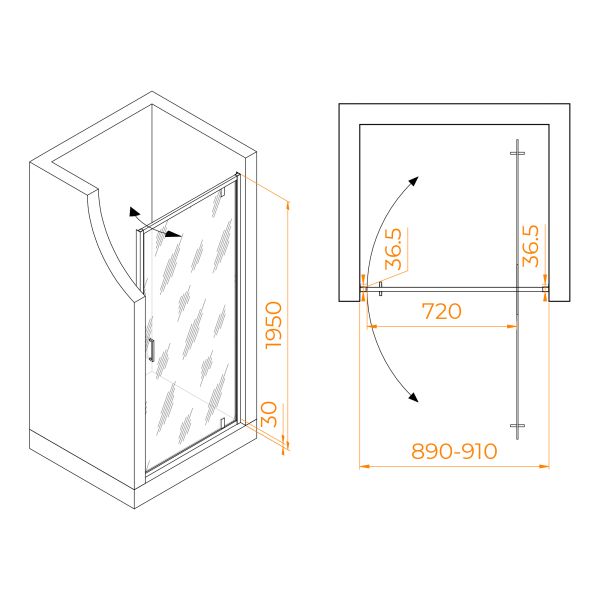 Элегантные стеклянные двери с пристенными профилями придают ванной комнате изысканность и строгость. Модели оснащены маятниковой петлёй, с защитой от провисания и подъёмом двери при открытии. Такой системой будет особенно удобно пользоваться если дверь установлена на плитку с встроенным трапом. Изделия оснащены Распашные двери открываются как наружу, так и внутрь, что обеспечит максимальный комфорт в процессе использования душевого пространства.Благодаря разнообразию размеров, подходят практически каждому клиенту.Ключевые характеристики: