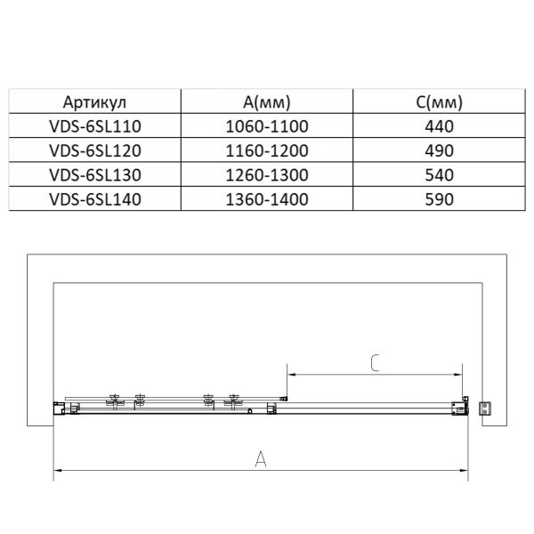 Душевая дверь Vincea Slim 8mm VDS-6SL110CL, 1100, хром, стекло прозрачное