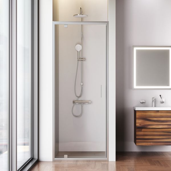 Душевая дверь в нишу Gem – легкая функциональная конструкция для стильного оформления душевой зоны в ванной комнате. Лаконичный дизайн и четко выверенные пропорции от собственного бюро AM.PM Design. Распашная конструкция образует широкий вход, комфортный для людей любой комплекции.