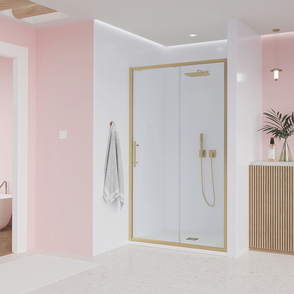 Душевая дверь Veconi Evo 100 G, 1000x1950, золото брашинг, стекло прозрачное купить