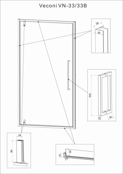 Душевая дверь Veconi Vianno VN-33, 700x1950, хром, стекло прозрачное