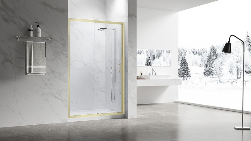 Душевая дверь Veconi Vianno VN-55G, 1400x1950, Золото брашинг, стекло прозрачное купить