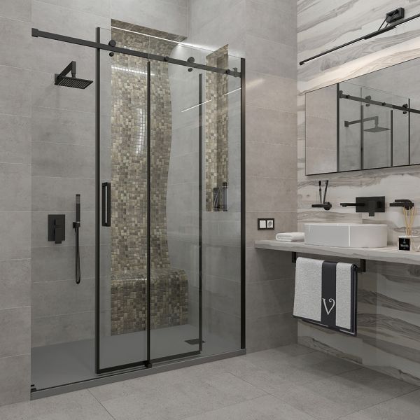 Душевая дверь Veconi Vianno VN-74B, 1200x1950, черный, стекло прозрачное купить