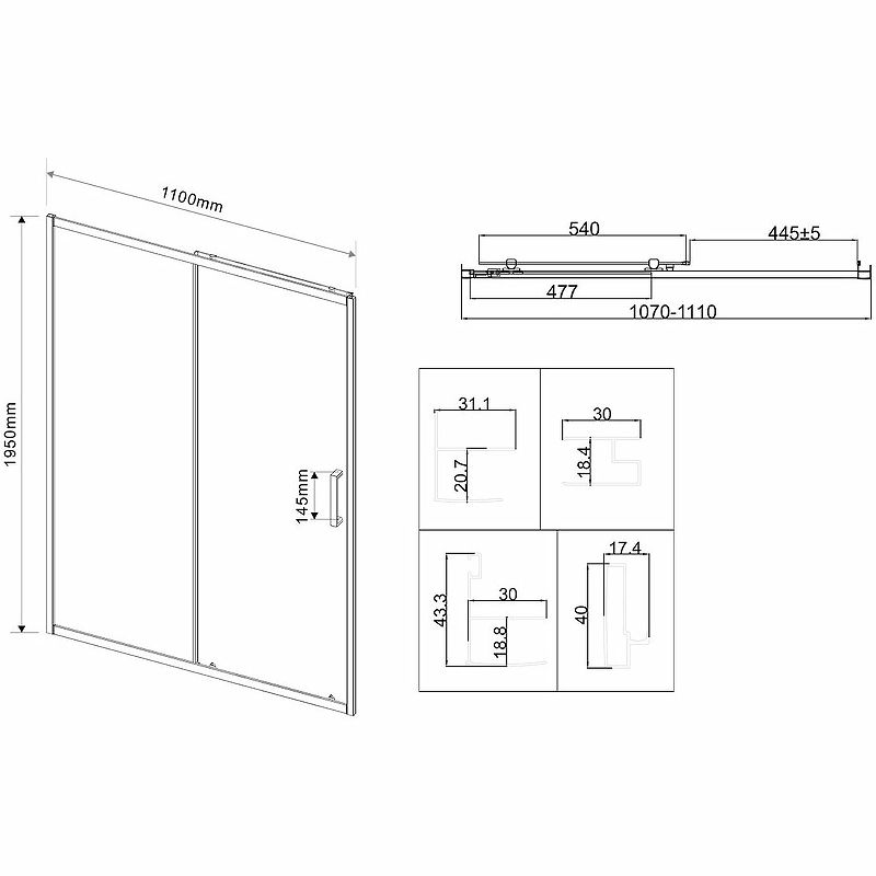 Душевая дверь Vincea City 110 VDS-5CT110MT профиль Хром стекло текстурноеСерия: