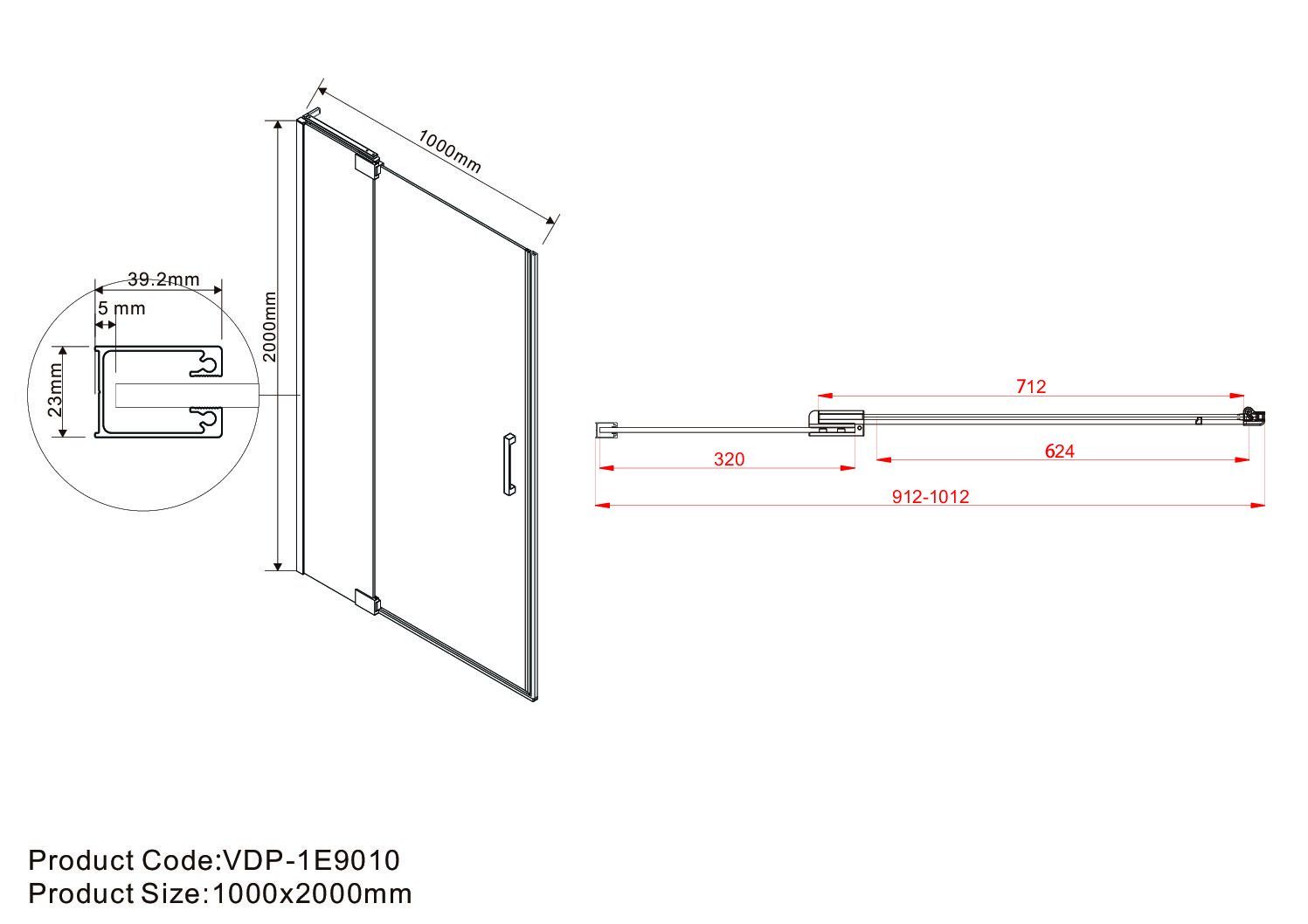 900/1000×2000Регулировочные размеры: