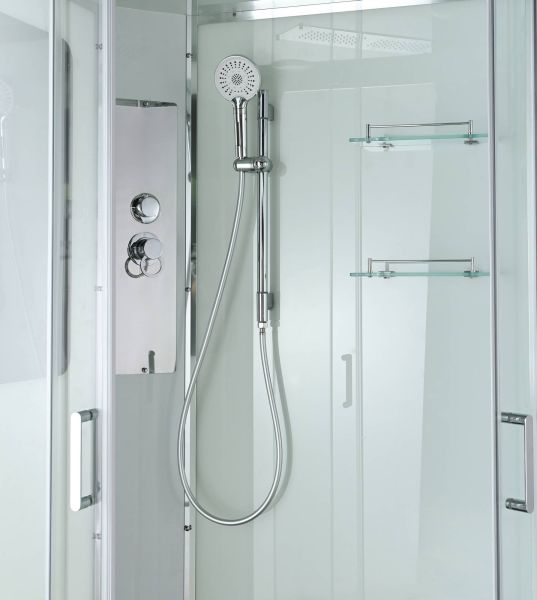 Стильная душевая кабина AvaCan сочетает в себе высокую функциональность, практичность и надежность. При изготовлении применяется безопасное закаленное стекло, надежно фиксируемое алюминиевым профилем. Профиль сделан из алюминия повышенной прочности. Сборка без силикона (увеличивает срок службы, защищает от протечек), внутренняя сборка (облегчает установку и ревизию; позволяет установить в ограниченном пространстве и обойтись без демонтажа других сантехнических приборов), смеситель резьбовой (без хомутов). Двойные металлические ролики дверей (распределение нагрузки на два ролика, увеличивают срок службы). Душевая штанга(позволяет регулировать по высоте ручную лейку), ручная арома-лейка с витамином С (картридж в комплекте,есть возможность замены или удаления картриджа), полочки(из стекла, с ограничителем), сифон с гидрозатвором.