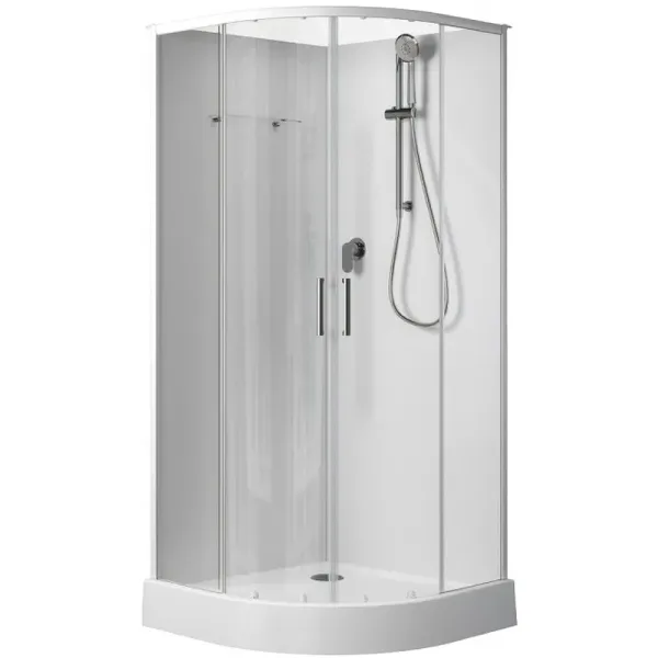 Душевая кабина Aquanet Passion EVO R white 90x90 набор 1 выглядит изыканно, так как отвечает потребительским запросам. Имея ширину 900 мм и глубину 900 мм, это изделие без проблем может быть установлено в любом помещении. Занимаясь расстановкой мебели и оборудования в ванной, обратите внимание, что кабина универсальная. Это открытая душевая кабина, так как верхняя часть изделия, которую обычно называют крышей, установка не предусмотрена. Дверцы у нее раздвижные, что очень удобно. Посмотрите на поддон, форма которого чаще всего называется четверть круга. Он низкий и выполнен из акрила. Душевая кабина имеет все необходимое. Следует учесть также, что освещение в кабине отсутствует. Для стенок изделия использовано закаленное прозрачное стекло толщиной 5 мм. Выглядит просто и при этом обеспечивает надежность конструкции. Профили в цвете белый подчеркнут изящность конструкции. Душевая кабина произведена в России. Гарантия на изделие: 2 года.
