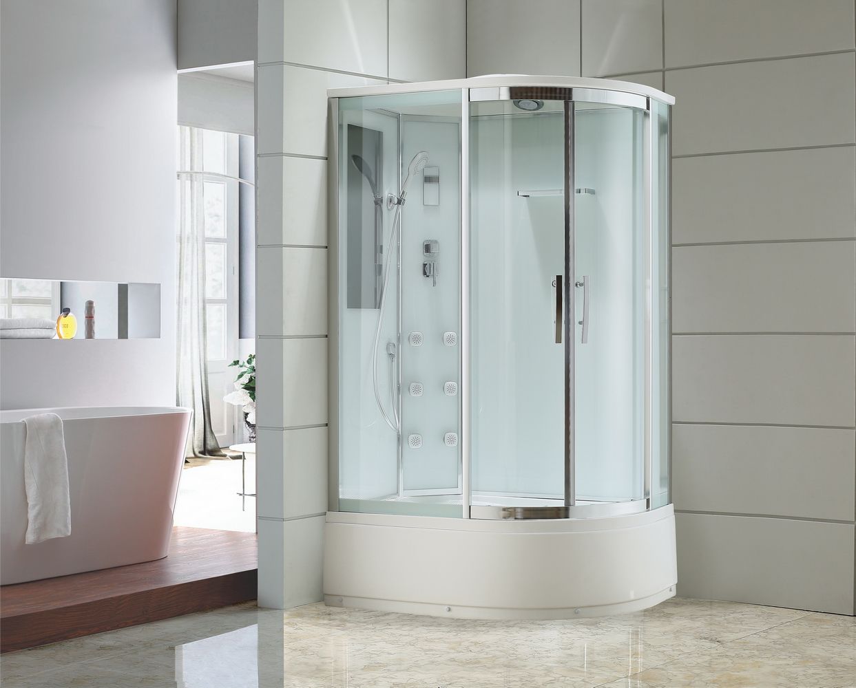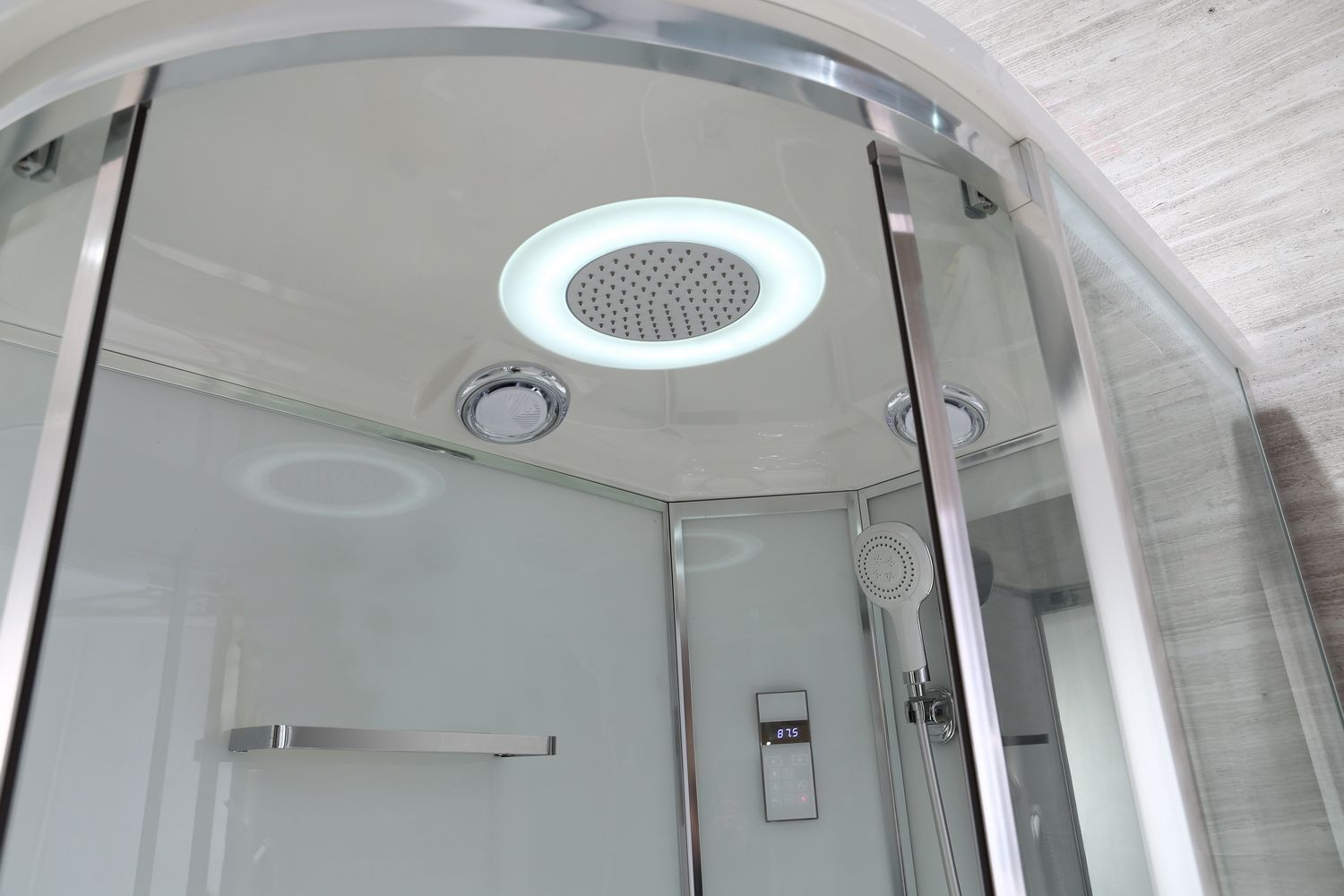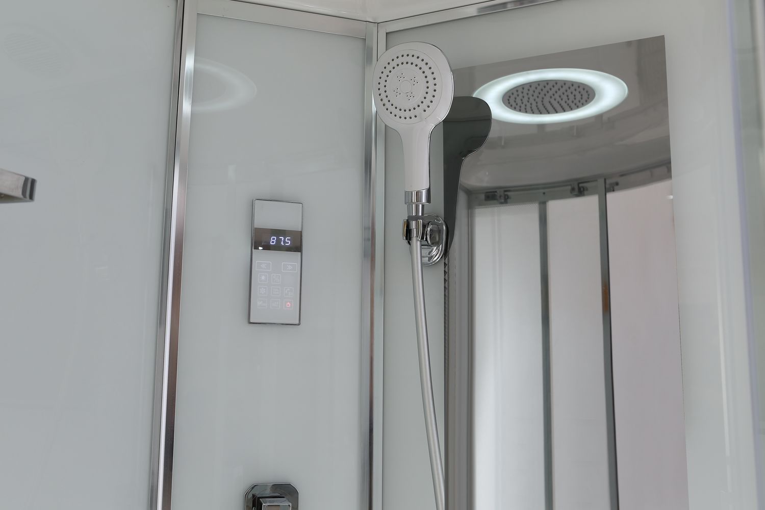 Интегрированное в стеклянную панель зеркало увеличенного размера для удобства и комфорта;
