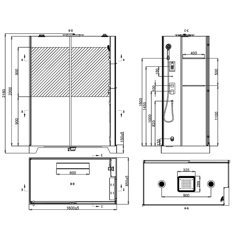 Размер (ШхВхД): 1600x2180x850 мм.