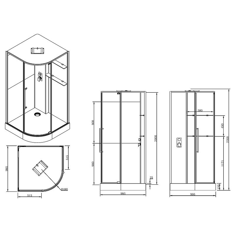 Душевая кабина Black and White Galaxy G8891 100х100 889100 с паром без гидромассажа