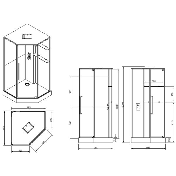 Материал боковых стенок: закаленное стекло, 5 мм.