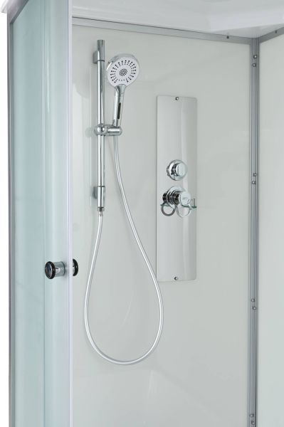 Стильная душевая кабина AvaCan D 2090 сочетает в себе высокую функциональность, практичность и надежность. При изготовлении применяется безопасное закаленное стекло толщиной 4 мм (матовое), надежно фиксируемое алюминиевым профилем. Сборка без силикона (увеличивает срок службы), внутренняя сборка (облегчает установку и ревизию, позволяет установить душевую кабину в ограниченном пространстве),смеситель резьбовой (без хомутов), съемный экран поддона (позволяет осуществлять ревизию сифона), цвет профиля матовый хром. Двойные металлические ролики дверей (увеличивают срок службы).В комплекте : душевая штанга, полочка, тропический (верхний) душ, арома-лейка с витамином С (картридж съемный).