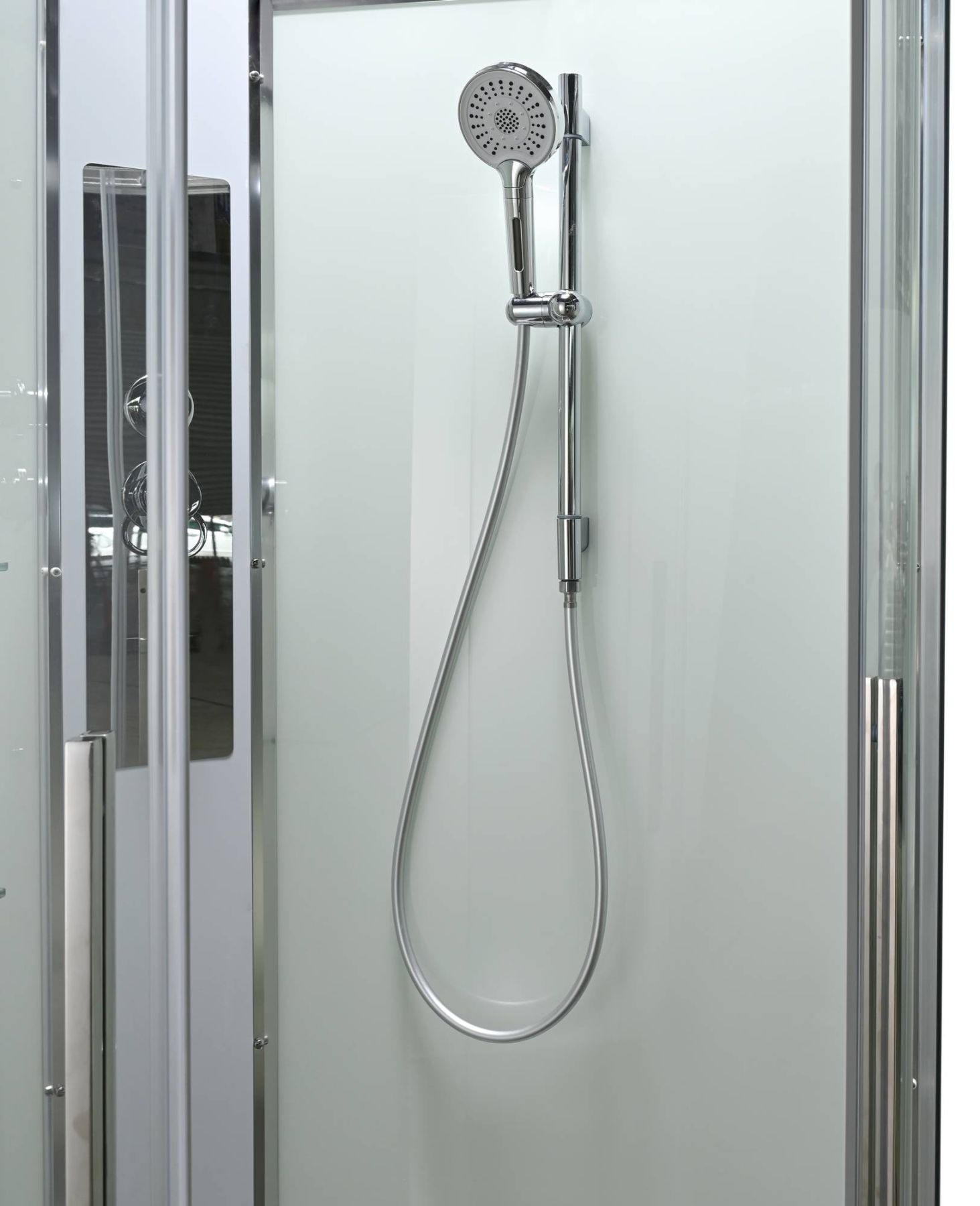 Стильная душевая кабина AvaCan EM2010NT сочетает в себе высокую функциональность, практичность и надежность. При изготовлении применяется безопасное закаленное стекло толщиной 5 мм (прозрачное), надежно фиксируемое алюминиевым профилем. Сборка без силикона (увеличивает срок службы), внутренняя сборка(облегчает установку и ревизию; позволяет установить в ограниченном пространстве), смеситель резьбовой (без хомутов). Съемный экран поддона (позволяет осуществлять ревизию сифона). Цвет профиля  хром. Двойные металлические ролики дверей (увеличивают срок службы).В комплекте : душевая штанга, две полочки , арома-лейка с витамином С (картридж съемный),полимерная вставка в поддон(имитация дерева),сифон, ручки дверей из нержавейки , двойные ролики .