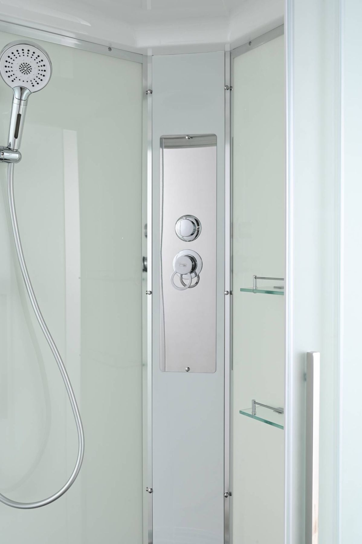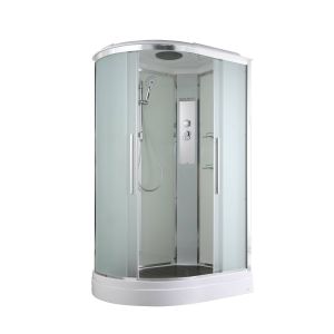 Стильная душевая кабина AvaCan EM2912R сочетает в себе высокую функциональность, практичность и надежность. При изготовлении применяется безопасное закаленное стекло толщиной 5 мм (матовое), надежно фиксируемое алюминиевым профилем. Сборка без силикона (увеличивает срок службы), внутренняя сборка(облегчает установку и ревизию; позволяет установить в ограниченном пространстве), смеситель резьбовой (без хомутов). Съемный экран поддона (позволяет осуществлять ревизию сифона). Цвет профиля  хром. Двойные металлические ролики дверей (увеличивают срок службы).В комплекте : душевая штанга, две полочки , тропический (верхний) душ, арома-лейка с витамином С (картридж съемный),полимерная вставка в поддон(имитация дерева),сифон, ручки дверей из нержавейки , двойные ролики .