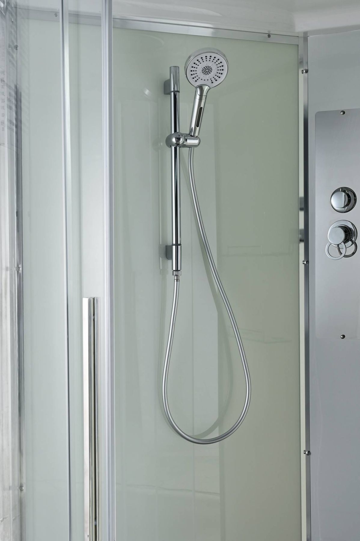Стильная душевая кабина AvaCan сочетает в себе высокую функциональность, практичность и надежность. При изготовлении применяется безопасное закаленное стекло, надежно фиксируемое алюминиевым профилем. Профиль сделан из алюминия повышенной прочности. Сборка без силикона (увеличивает срок службы, защищает от протечек), внутренняя сборка (облегчает установку и ревизию; позволяет установить в ограниченном пространстве и обойтись без демонтажа других сантехнических приборов), смеситель резьбовой (без хомутов). Съемный экран поддона (позволяет осуществлять подключение и ревизию сифона).Двойные металлические ролики дверей (распределение нагрузки на два ролика, увеличивают срок службы). Душевая штанга(позволяет регулировать по высоте ручную лейку), ручная арома-лейка с витамином С (картридж в комплекте,есть возможность замены или удаления картриджа), полочки(из стекла, с ограничителем), сифон с гидрозатвором.