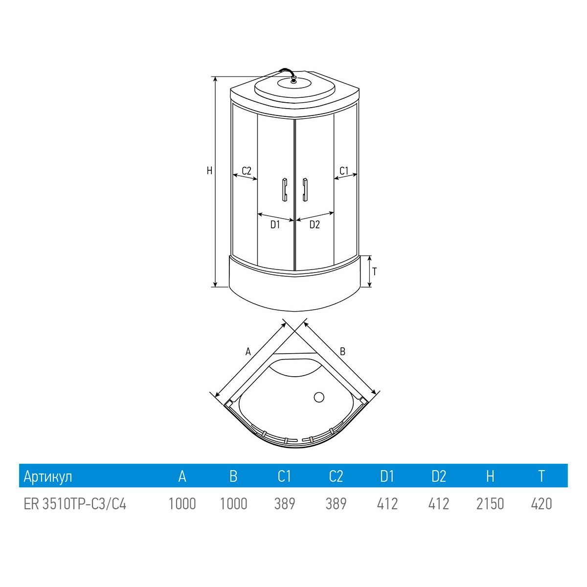 Душевая кабина Erlit Comfort ER3510TP-C3-RUS (1000x1000x2150)