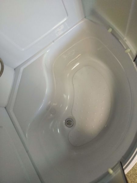 Душевая кабина Parly AE901Размеры душевой кабины Parly AE901Размер: 90х90х215 смСветлая компактная кабина подойдет в дом молодой семьи: высокие борты поддона позволяют набирать воду для замачивания вещей и купания детей, животных.Достоинства:Закаленное стекло толщиной 4 мм практически невозможно разбить. Матовое полотно не требует часто чистки. Сквозь стекло можно рассмотреть только контуры тела.Задние стенки из акрила.Профиль: белый алюминиевый. Профиль устойчив к коррозии и не боится высокой влажности.Поддон: высокий 48 см, полукруглый, с рельефным дном.Комплектация: верхний душ ТРОПИК, ручной душ, сифон.Возможна установка пульта управления в центральную панель.монтаж без силикона