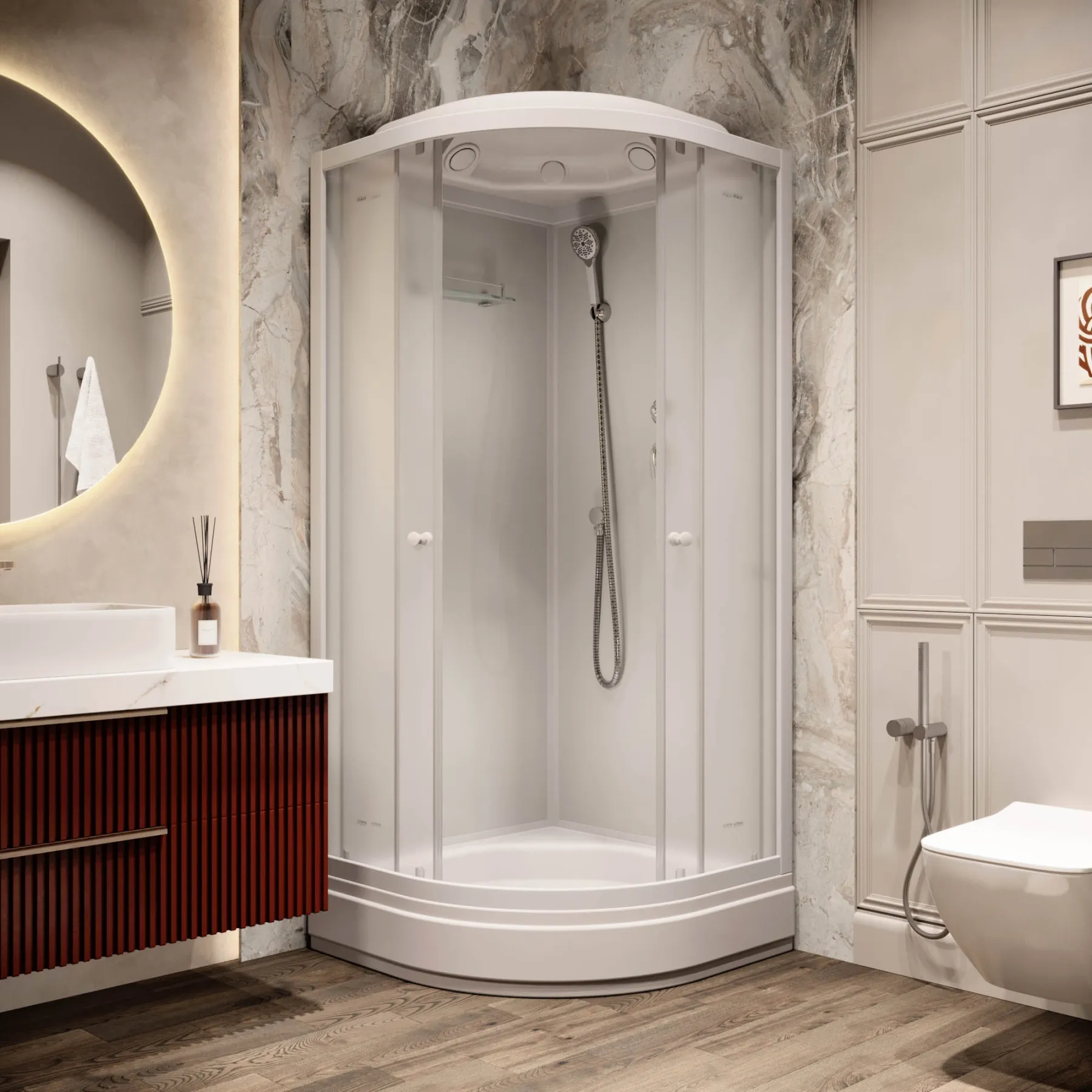 - Поддон, крыша и экран — из прочного белого ABS-пластика