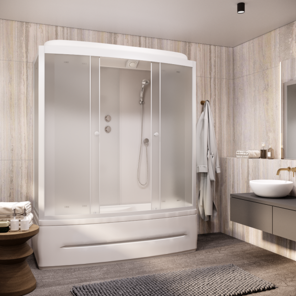 Бокс BNE170FR душевой PARLY (9337)Размер: 170х75х215 смБокс впишется в светлый и темный дизайн ванной комнаты. Внутри душевой зоны достаточно места, чтобы принимать душ вдвоем.Достоинства:Стекло: матовое закаленное, 4 мм. Сквозь полотно просматриваются только контуры фигуры. Матовое стекло не прихотливо в уходе и не требует частой чистки.Стенки: закаленное стекло белое, 4 мм.Профиль: матовый хромированный, алюминиевый. Профиль не боится высокой влажности и не подвержен коррозии.Поддон: высокий, прямоугольный. Поддон можно использовать в качестве ванночки для купания и замачивания вещей.Комплектация: верхний душ ТРОПИК, ручной душ, сифон, налив воды в поддон. Без пульта, без радио, без подсветки.