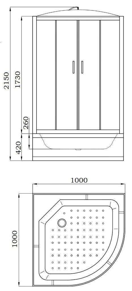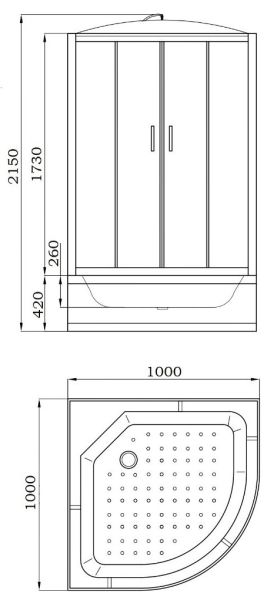 • Поддон: высокий 42 см, полукруглый, рельефное дно, литое сиденье.