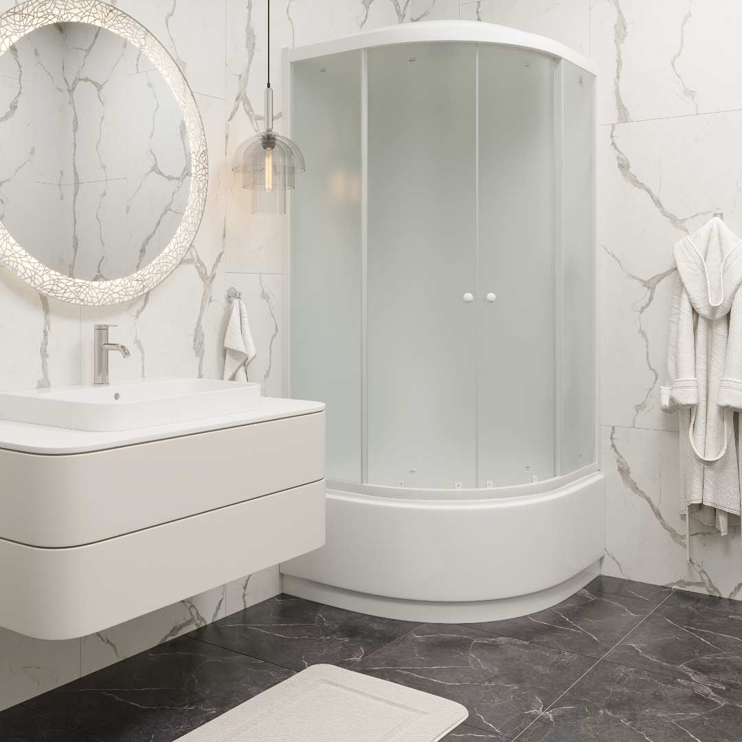 Поддон, крыша и экран выполнены из белого ABS-пластика
