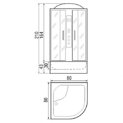 ~ крыша ~ верхний душ ~ верх.свет ~ динамик ~ вентилятор ~ цент.стойка ~ пульт упр-я сенсорный ~ радио ~ смеситель с переключ. режимов ~ 6 г/м форс. ~ штанга ~ ручной душ 3х режимн. ~ зеркало ~ полочка ~ сиденье ~ поддон п/кр. выс.с/сид-ем с/съем.экр. (Н=46см) ~ сифон