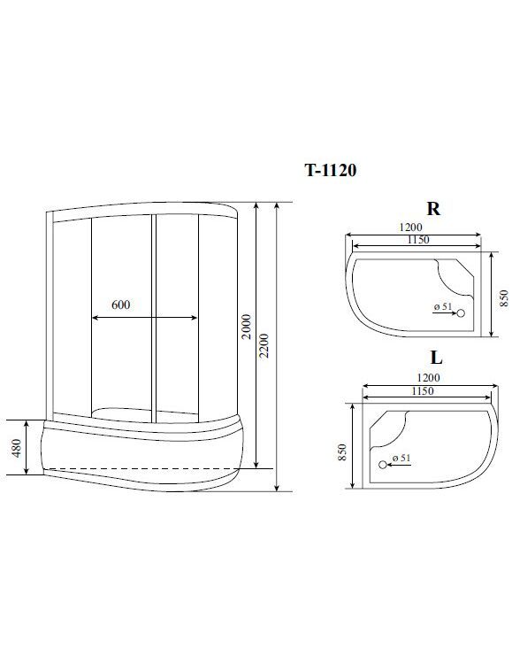 Душевая кабина Timo Standart T-6620BFL Black Fabric L 120x85см