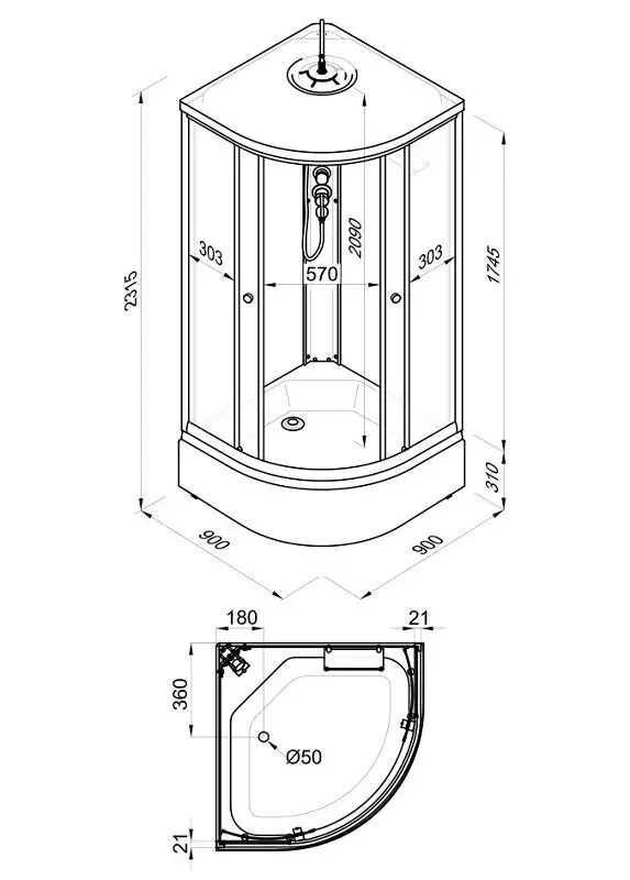 профиль белый Душевая кабина с крышей ДК Лайт 90*90 В, 7 мест+сифон D50 Размер: 90 x 90... Подробнее