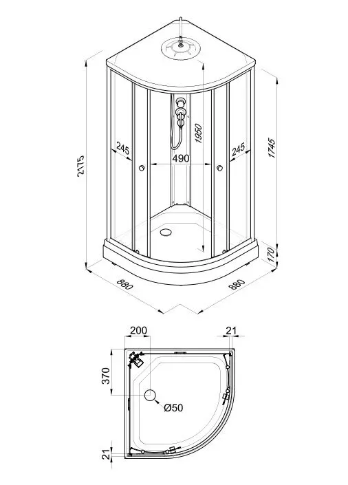 • Сифон душевой кабины: 50 мм