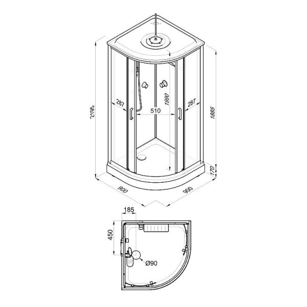 Душевая кабина Triton Прайм-Сатин Щ0000071581, 90 x 90 см, поддон низкий А, стекло прозрачное, профиль сатин