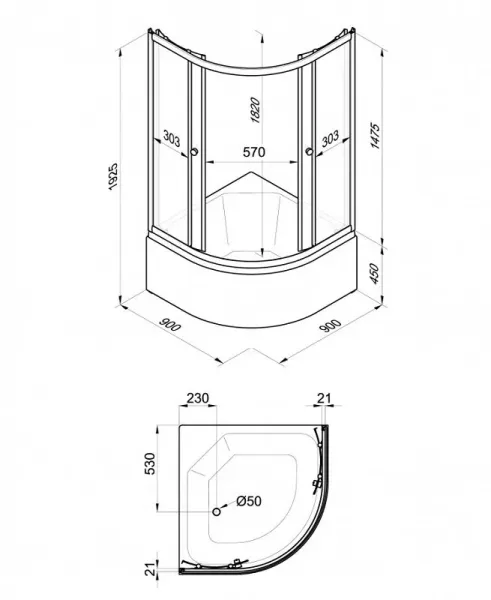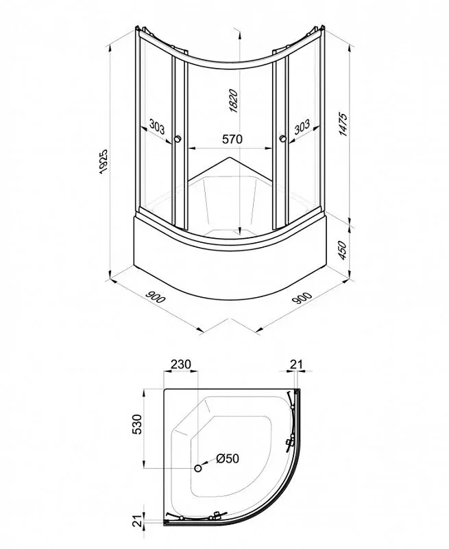 • Высота поддона: 45 см, акрил