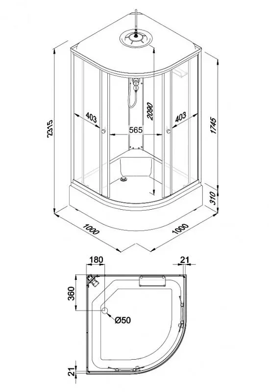 Душевая кабина с крышей ДК Ультра 100*100 В, 7 мест+сифон D50 Размер: 100 x 100 x 231.5 ... Подробнее