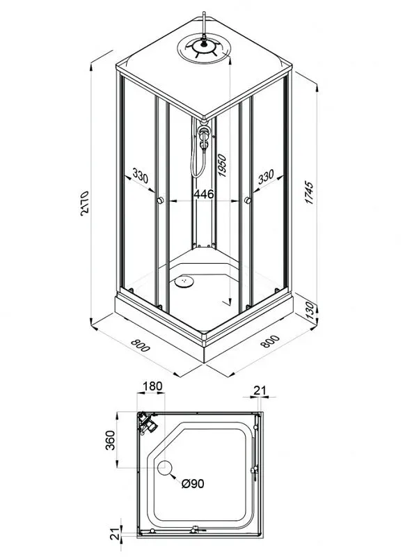 Душевая кабина с крышей ДК Вельвет 80*80 К, 6 мест+сифон D90 Размер: 80 x 80 x 217 см ... Подробнее