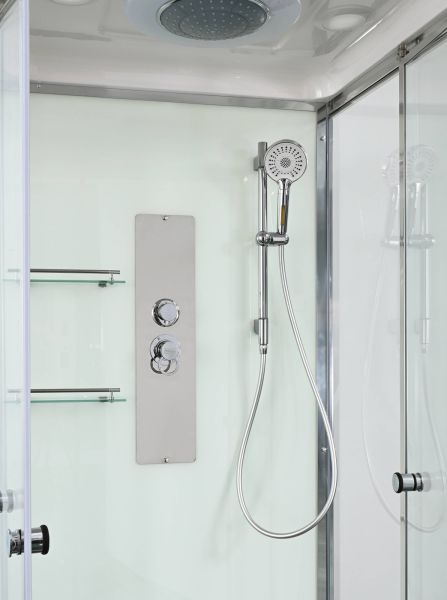 Стильная душевая кабина AvaCan сочетает в себе высокую функциональность, практичность и надежность. При изготовлении применяется безопасное закаленное стекло, надежно фиксируемое алюминиевым профилем. Профиль сделан из алюминия повышенной прочности. Сборка без силикона (увеличивает срок службы, защищает от протечек), внутренняя сборка (облегчает установку и ревизию; позволяет установить в ограниченном пространстве и обойтись без демонтажа других сантехнических приборов), смеситель резьбовой (без хомутов). Съемный экран поддона (позволяет осуществлять подключение и ревизию сифона).Двойные металлические ролики дверей (распределение нагрузки на два ролика, увеличивают срок службы). Душевая штанга(позволяет регулировать по высоте ручную лейку), ручная арома-лейка с витамином С (картридж в комплекте,есть возможность замены или удаления картриджа), полочки(из стекла, с ограничителем), сифон с гидрозатвором.