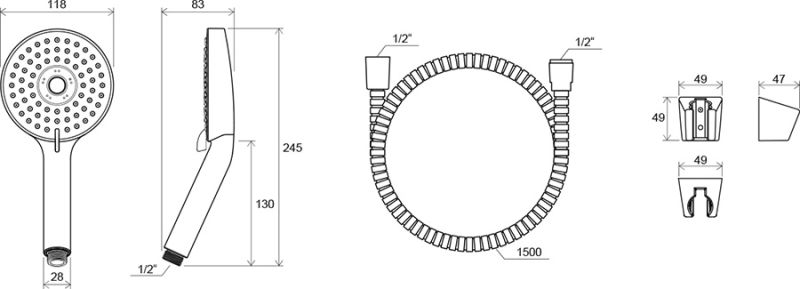 • лейка ручного душа: диаметр 118 мм, 3 режима - "Rain", "Jet", "Soft"