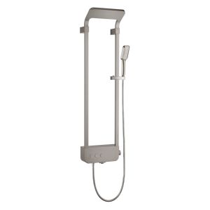 верхний душ, ручной душ и поворотный излив. Кнопочное