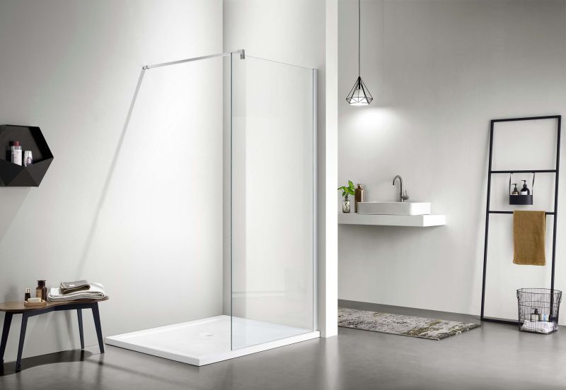 Уникальное решение для защиты ванной комнаты от брызг. Бескаркасное стекло душевой перегородки w... Подробнее
