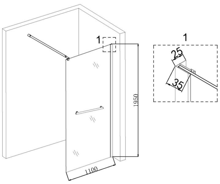 Исполнение полотна перегородки: прозрачное закаленное стекло, толщиной 6 мм.