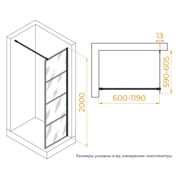 Душевая перегородка WA-019B — идеальное решение для создания стильного и функционального пространства в ванной комнате. С общей высотой 2000 мм, она надежно защищает от разбрызгивания воды за пределы душевой зоны. Перегородка оснащена прозрачным закаленным стеклом толщиной 8 мм, которое не только визуально расширяет пространство, но и придает современный и элегантный вид. Благодаря своей прочности, закаленное стекло обеспечивает высокий уровень безопасности и долговечности, что делает перегородку идеальным выбором для использования в ванной комнате. Профиль, выполненный из анодированного алюминия ALUSTRONG MAX, гарантирует долговечность и устойчивость к коррозии. Черная керамическая краска, нанесенная методом шелкографии. Стильный рисунок: горизонтальные линии и по периметру стекла, добавляет изысканный акцент и современный вид. 3 класс герметичности гарантирует, что вода останется там, где она должна быть, сводя к минимуму риск любого повреждения водой пола в ванной комнате.Универсальный монтаж позволяет легко и гибко установить перегородку в любой планировке ванной комнаты. Дополнительное покрытие стекла с эффектом анти-капля Easy Clean облегчает уход за перегородкой и сохраняет её чистоту. С ресурсом эксплуатации в 15 лет и гарантией 3 года, душевая перегородка WA-019B — надежный выбор для вашего душевого пространства!