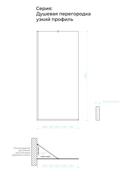 Душевая перегородка в профиле by Deonria P-195-79-8-T-B 79см чёрный/прозрачный купить