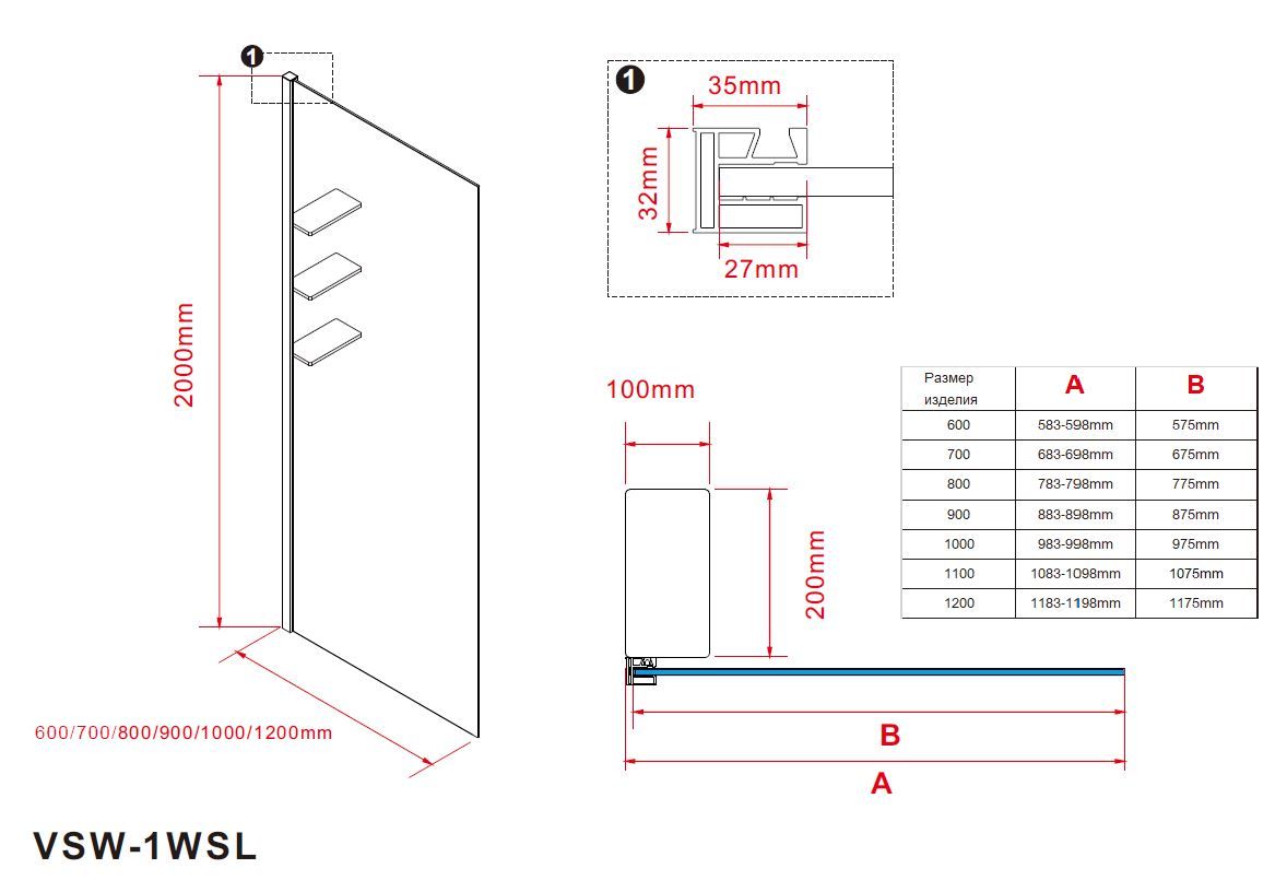 Душевая перегородка Vincea Walk-In VSW-1HWS900CGGM, 900*2000, вороненая сталь, стекло тонированное