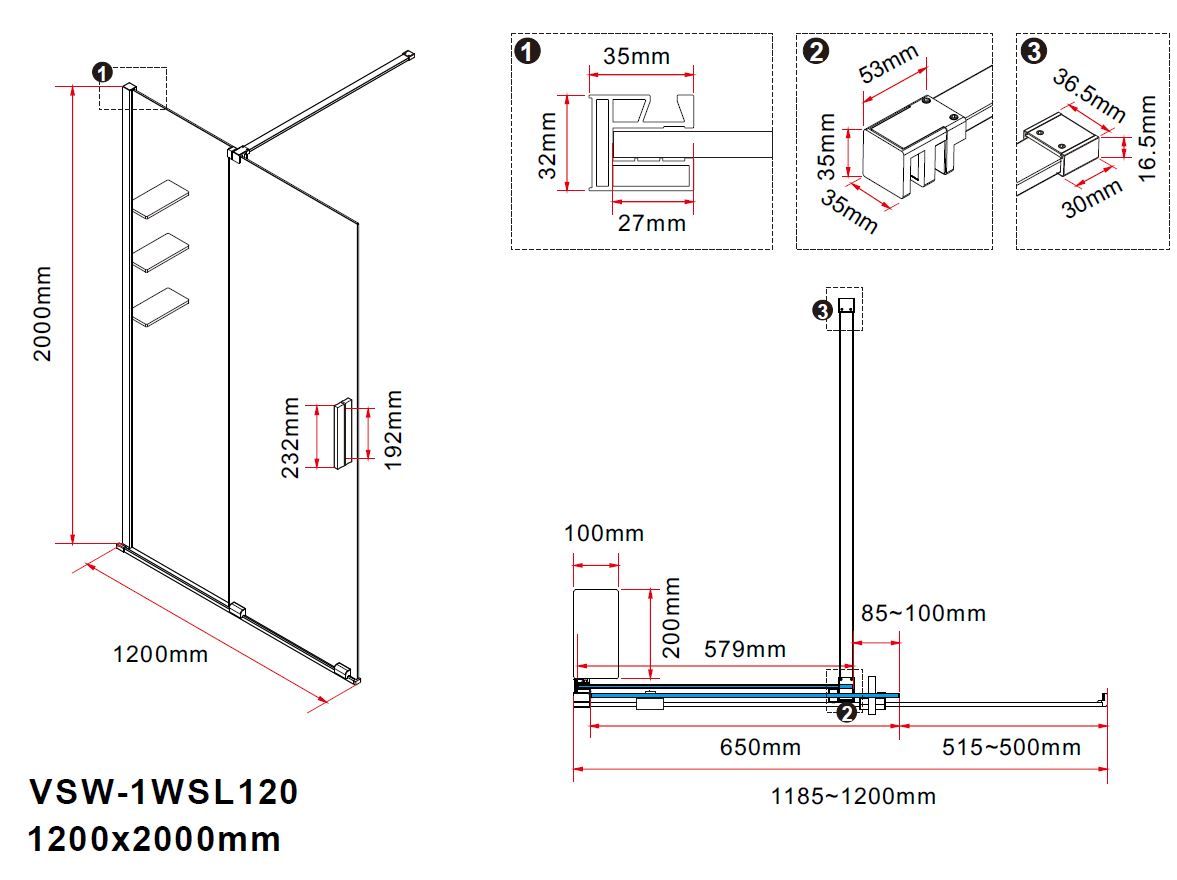 Душевая перегородка Vincea Walk-In VSW-1WSL120GSGM, 1200*2000, вороненая сталь, стекло янтарь