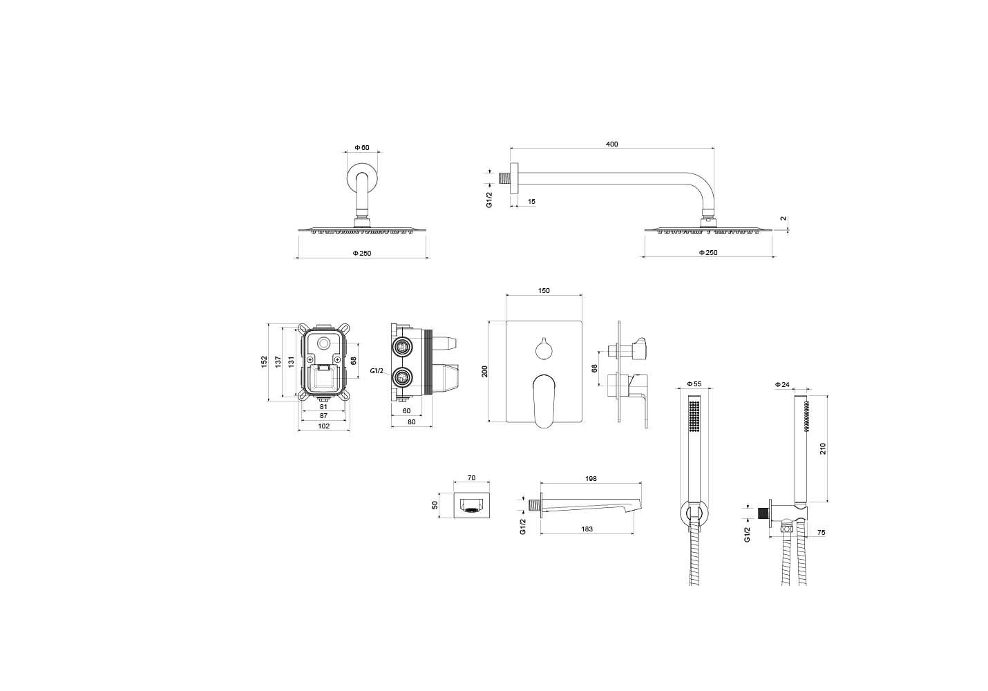 Размер/Диаметр верхнего душа (см): 25х0,2